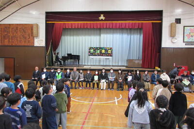 「ふるさと」は最初に6年生がアカペラで合唱を披露し、とてもきれいな声が体育館に響いていました。