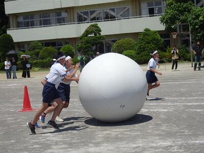全校競技「大玉送り」の練習では、赤組・白組どちらも一致団結して取り組みました。