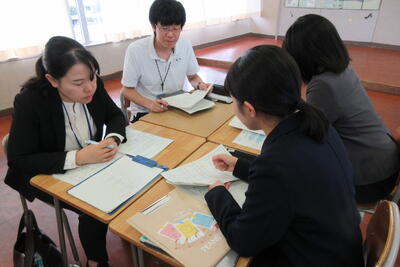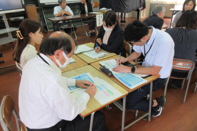 放課後は、参加した他校の先生方と協議を行い、授業について振り返りました。