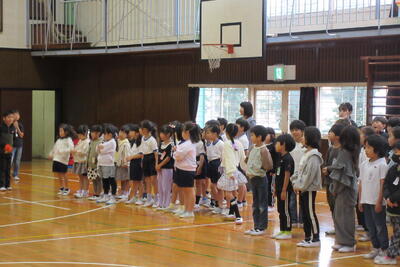 10月の音楽朝会は、「もみじ」の全校合唱と4年生の市内音楽会で歌う曲の発表がありました。
