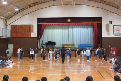 もみじは、秋の美しい様子を思い浮かべながら全校児童のきれいな歌声が体育館いっぱいに響きました。